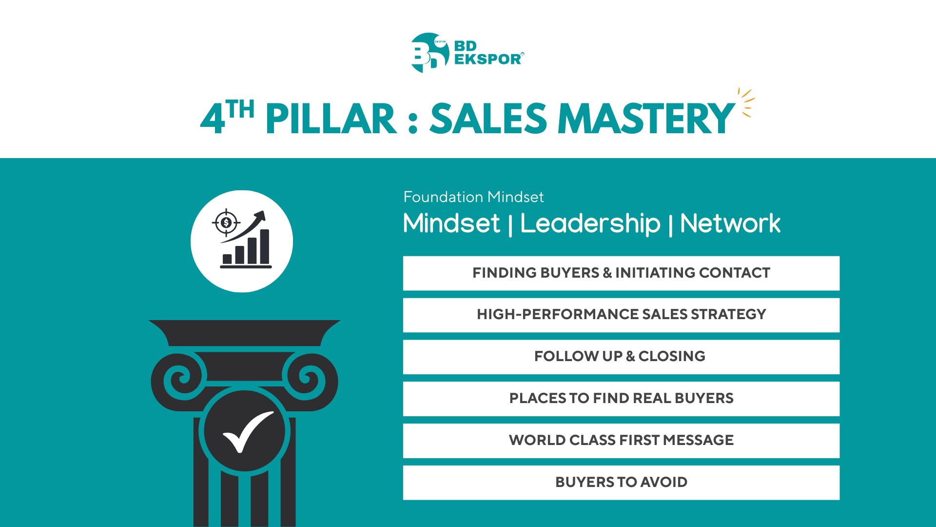 BD Ekspor sudah menyediakan strategi, ilmu, dan senjata terbaik untuk membangun bisnis ekspor kamu. Maka, jaminan mendapatkan buyer sepenuhnya ada di eksekusi kamu masing-masing.