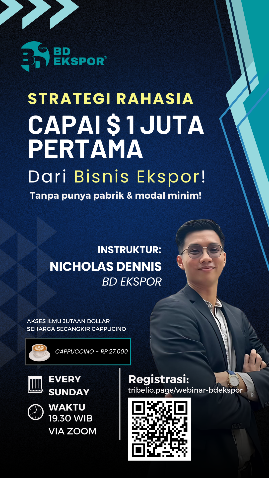 Kamu bisa bergabung ke grup WA dan bertanya di grup BD Ekspor. Pertanyaan kamu akan dijawab langsung Brodi, Nicholas Dennis, atau teman-teman eksportir lainnya. Kamu juga bisa bertanya saat Webinar di Zoom.